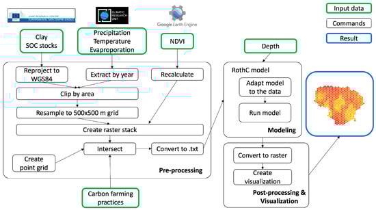 Before running the RothC model, all datasets had to be harmonized to ensure compatibility in terms of format, spatial resolution, coordinate reference system, and coverage.