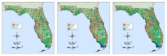 - Carr, M.H.; Zwick, P.D. Florida 2060 Version 2.0: Three Alternative Land Use Scenarios: A Trend Scenario and Two Scenarios That Consider Sea Level Rise; University of Florida Center for Landscape Conservation Planning: Gainesville, FL, USA, 2013; p. 21. [Google Scholar]