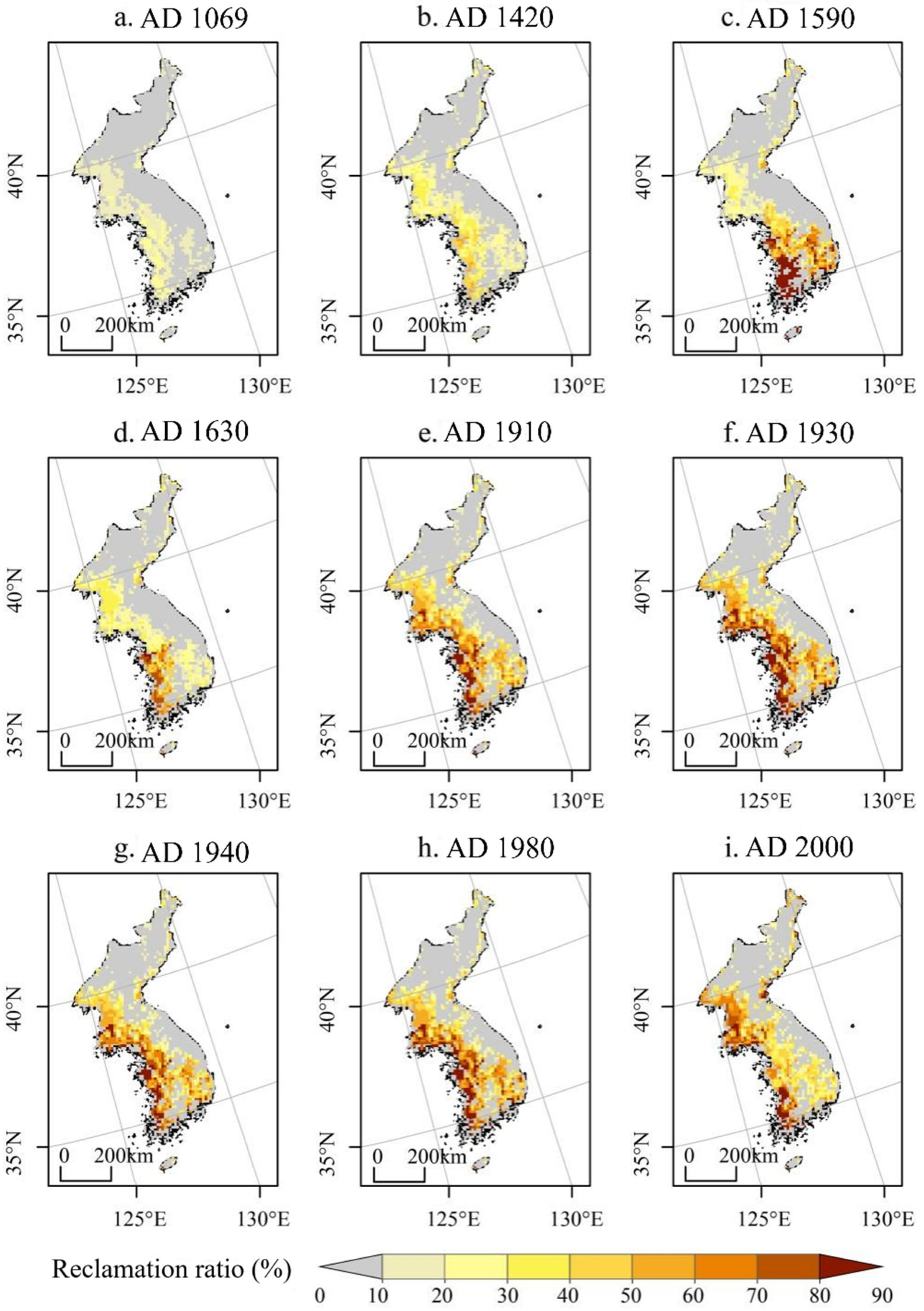 | Historical cropland data | AD 1069 | National | The History of Goryeo [46] |