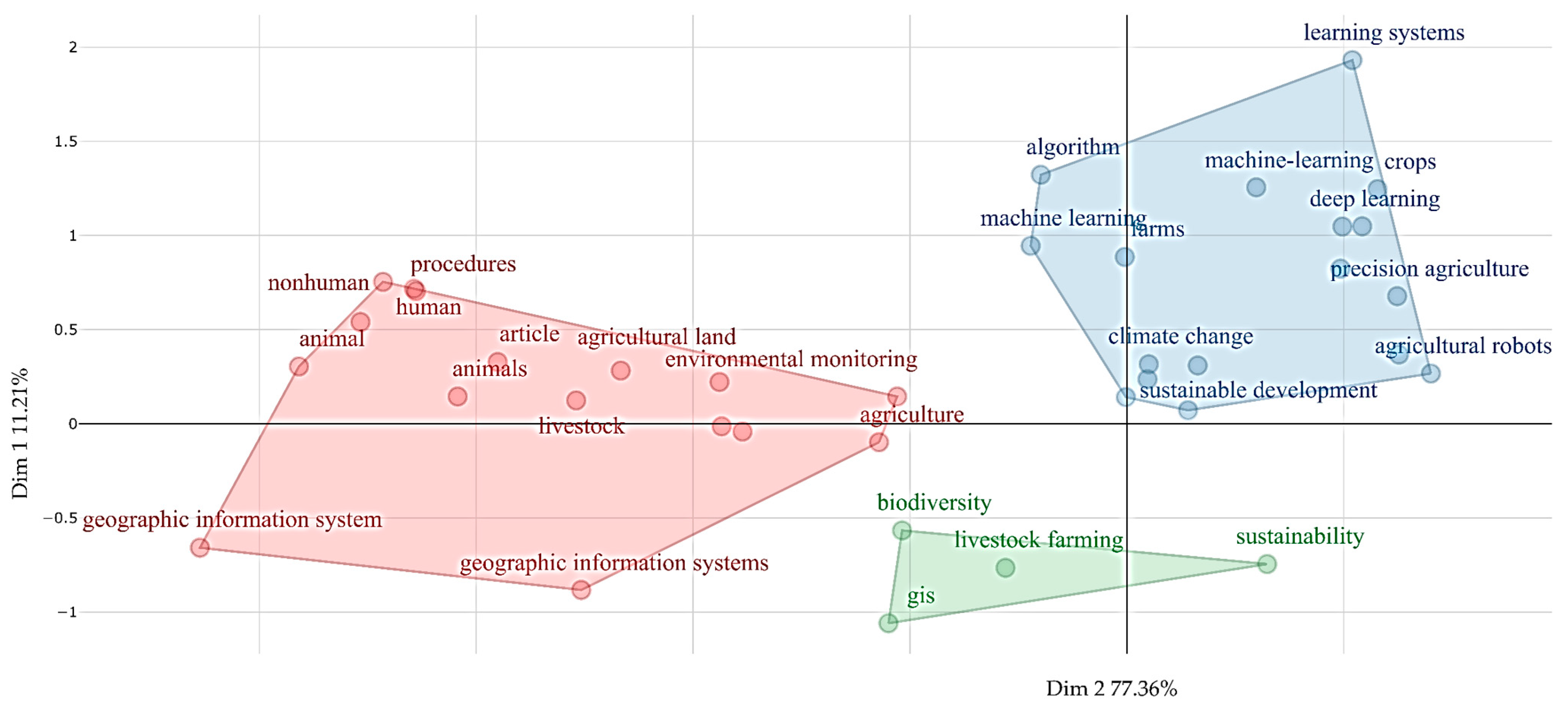 | Prioritize research areas where Ecuador is underrepresented relative to global trends | Align national production with leading international themes | MCA results showed limited Ecuadorian presence in Intelligent Digital Agriculture & Sustainability, the most influential global cluster. Strengthening this line would reduce thematic gaps. |