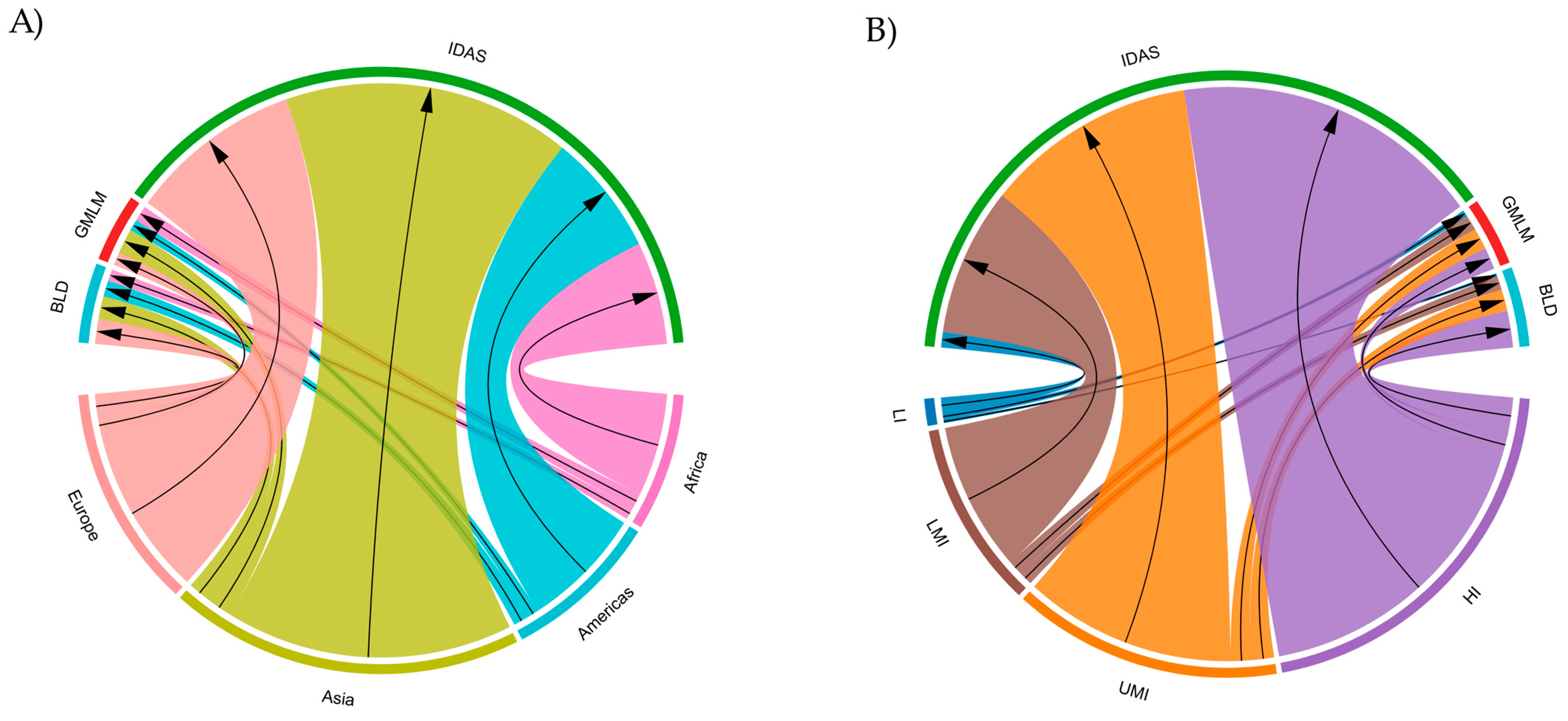 3.2.3. Thematic Distribution by Country Income and Continental Origin
