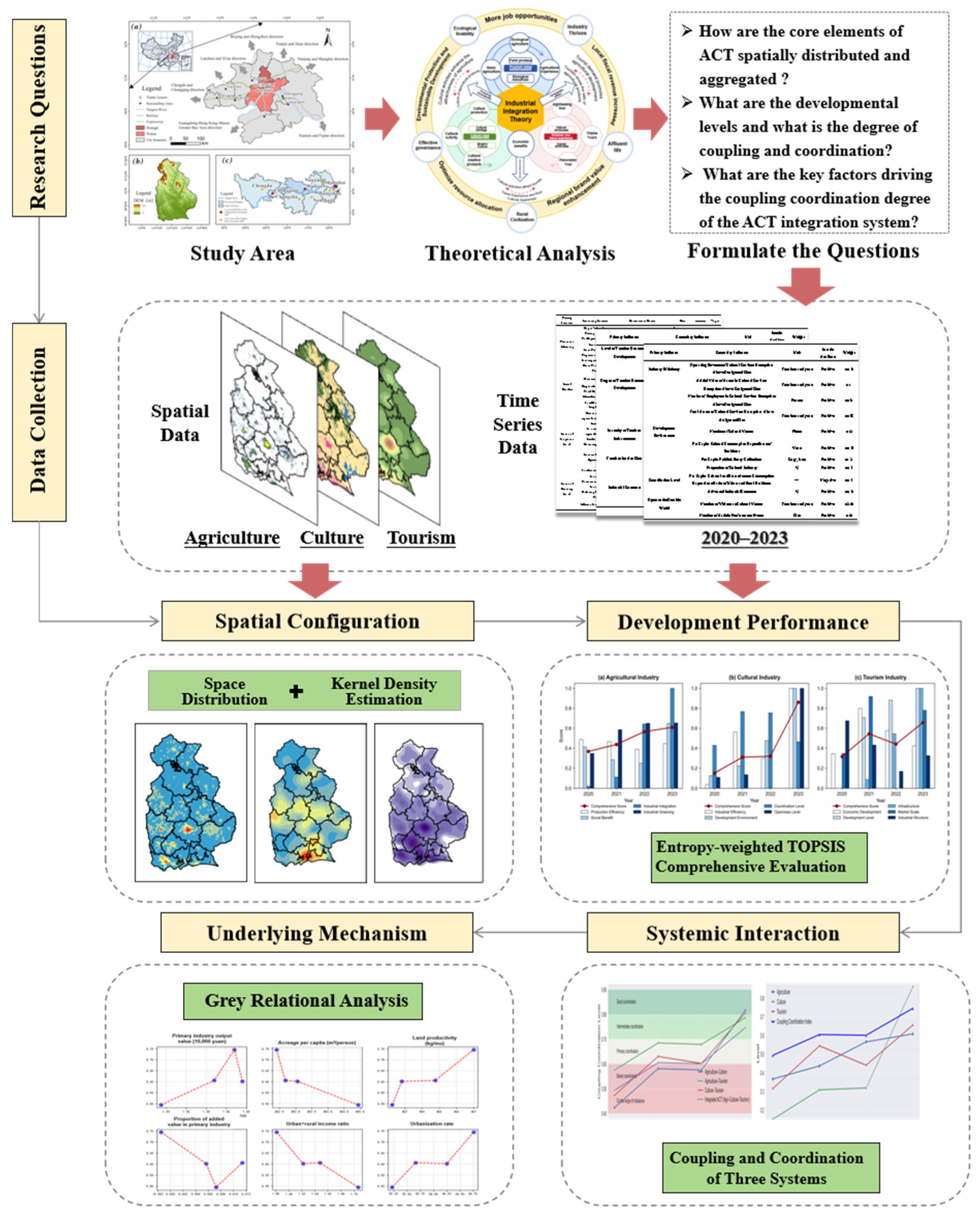 - Zhao, B.; Zhan, S. Spatio-Temporal Evolution and Influencing Factors of the Coupling Coordination Degree Between Agricultural-Cultural-Tourism Integration and Rural Revitalization: A Case Study of Shaanxi Province. Chin. J. Agric. Resour. Reg. Plan. 2025, 1–14. Available online: https://link.cnki.net/urlid/11.3513.s.20250217.1359.016 (accessed on 1 December 2025).