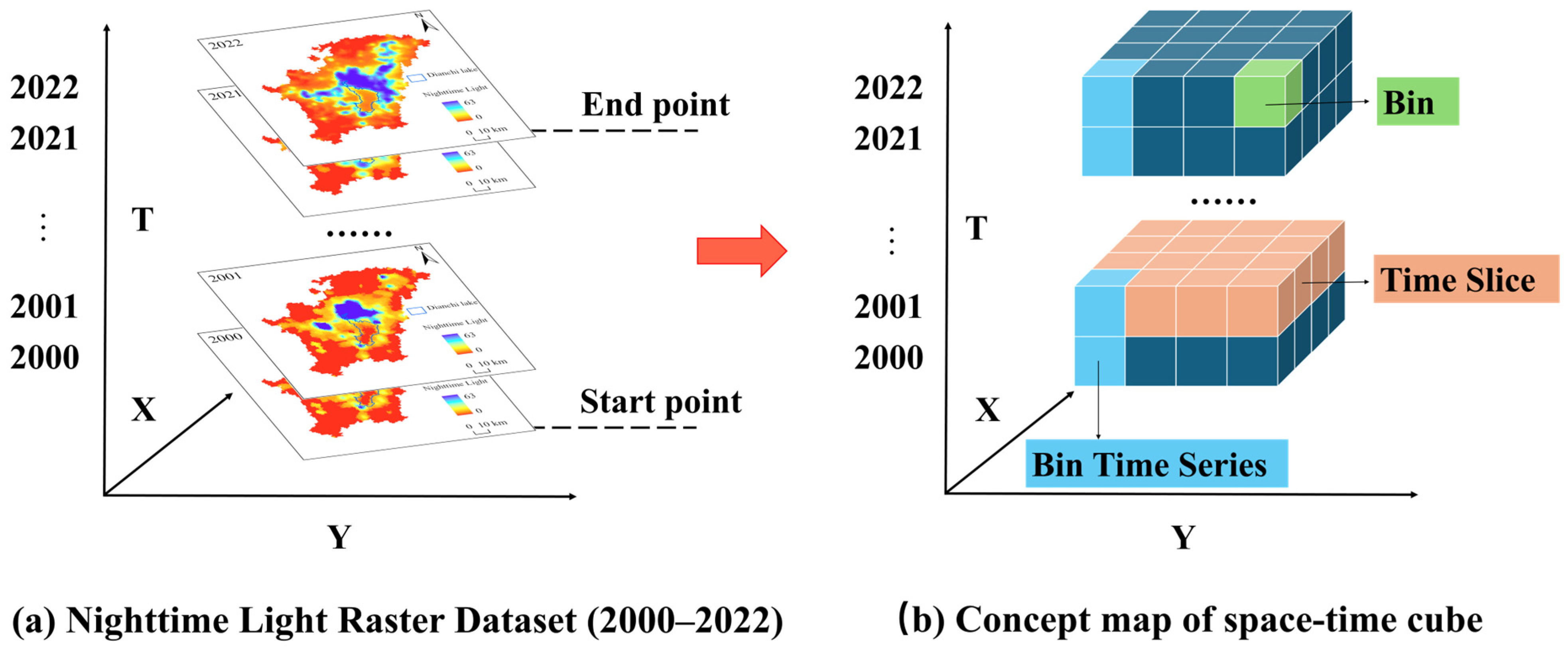 - Deng, Z.; Huang, J.; Ruan, C.; Li, J.; Gao, S.; Cai, Y. Volume-Based Space-Time Cube for Large-Scale Continuous Spatial Time Series. IEEE Trans. Vis. Comput. Graph. 2025, 31, 7019–7033. [Google Scholar] [CrossRef]
