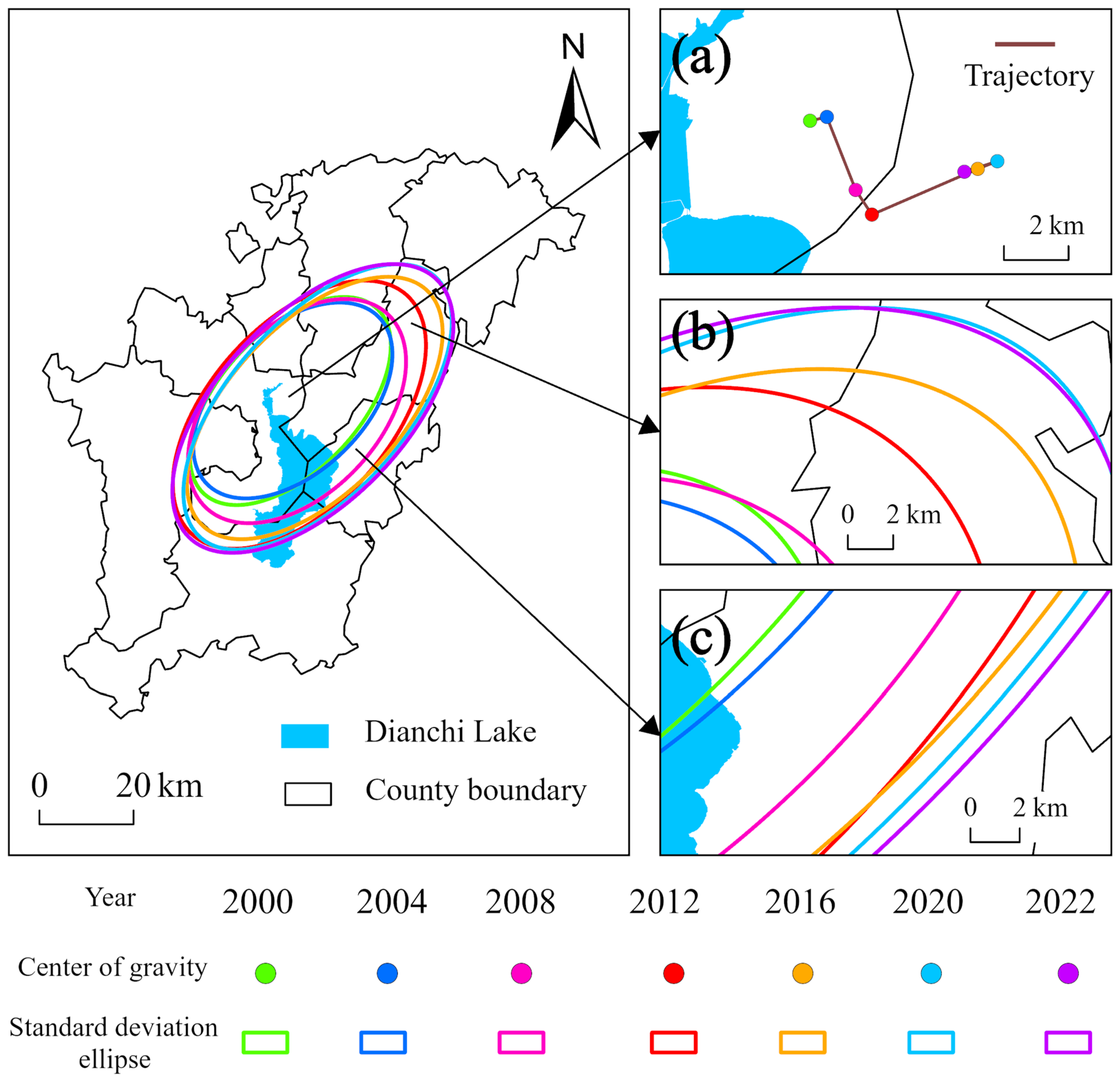 - Zhang, Y.; Jiang, P.; Cui, L.; Yang, Y.; Ma, Z.; Wang, Y.; Miao, D. Study on the spatial variation of China’s territorial ecological space based on the standard deviation ellipse. Front. Environ. Sci. 2022, 10, 982734. [Google Scholar] [CrossRef]