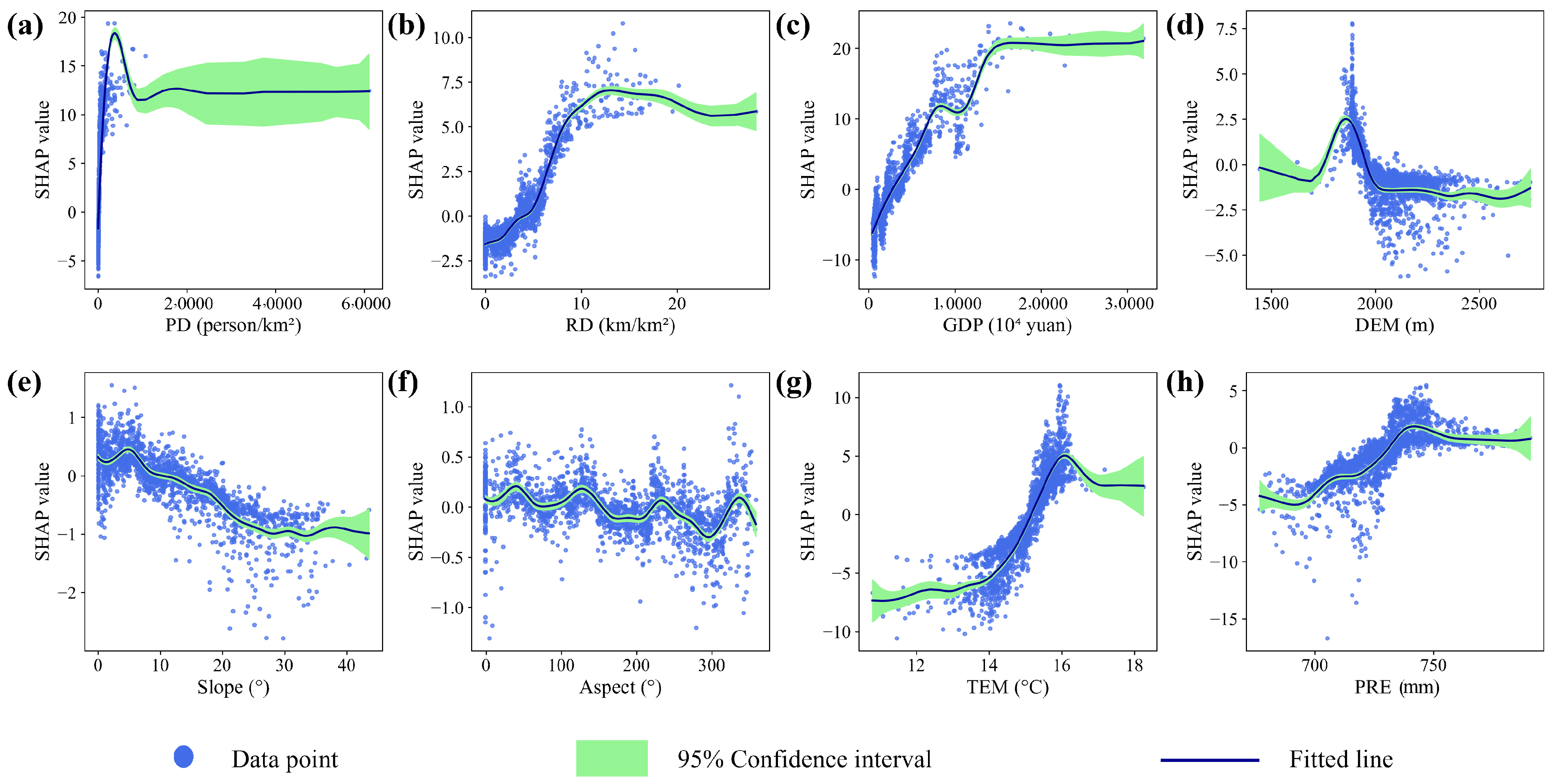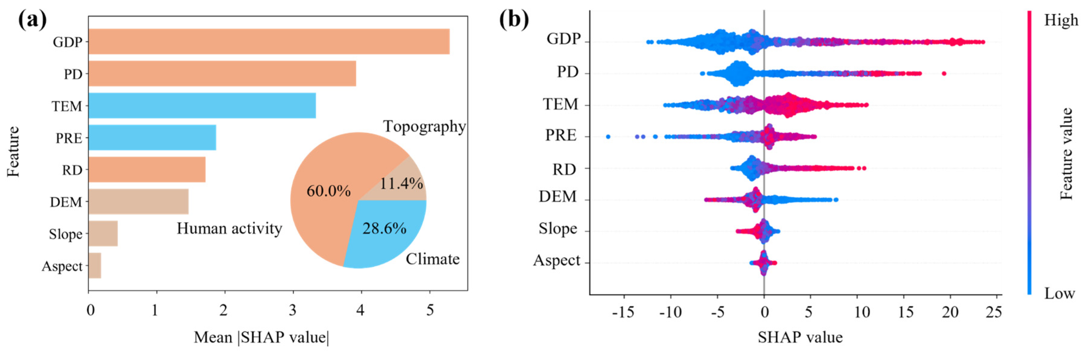 | Human activity | Population Density | PD | 1 km | 2000–2022 | Data from https://landscan.ornl.gov/ (before 24 December 2025) was used to calculate the annual average raster. | 1.25 | |