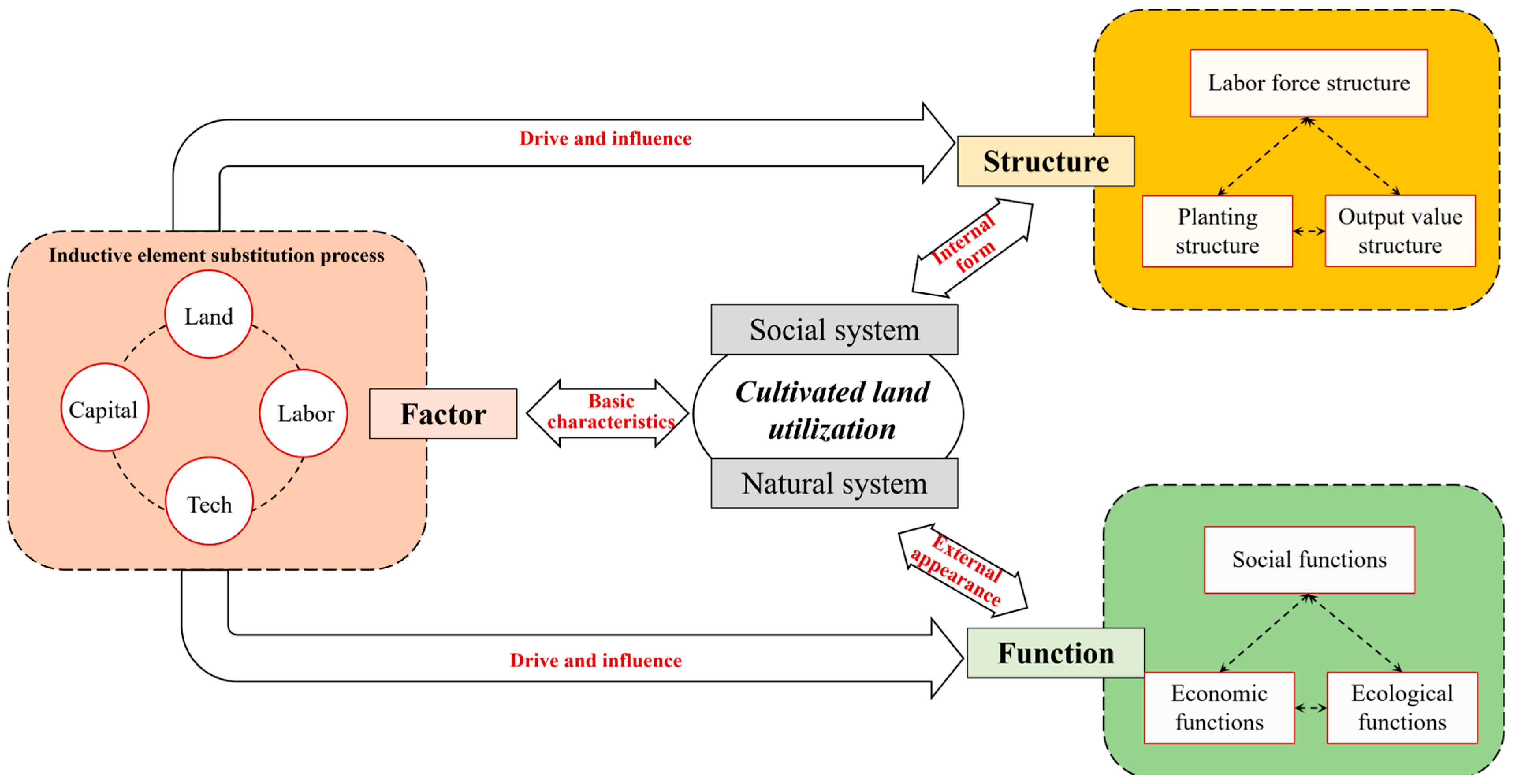 Chicago/Turabian StyleLyu, Yuefeng, Songnian Zhao, Zilu Qiu, Mengjing Wang, and Cifang Wu. 2026. "The Spatio-Temporal Process of Regional Cultivated Land Use Transition: An Integrated Framework of “Factor-Structure-Function”" Land 15, no. 1: 68. https://doi.org/10.3390/land15010068