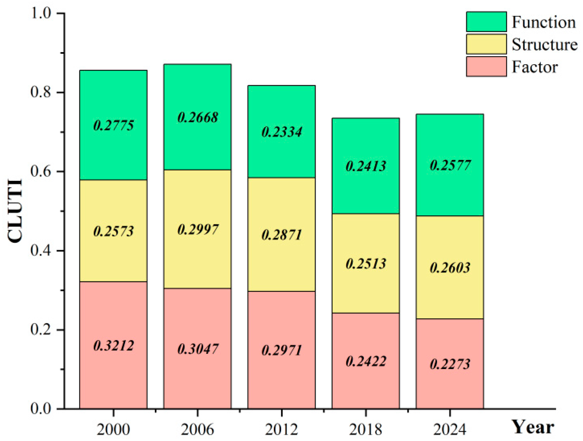 APA StyleLyu, Y., Zhao, S., Qiu, Z., Wang, M., & Wu, C. (2026). The Spatio-Temporal Process of Regional Cultivated Land Use Transition: An Integrated Framework of “Factor-Structure-Function”. Land, 15(1), 68. https://doi.org/10.3390/land15010068