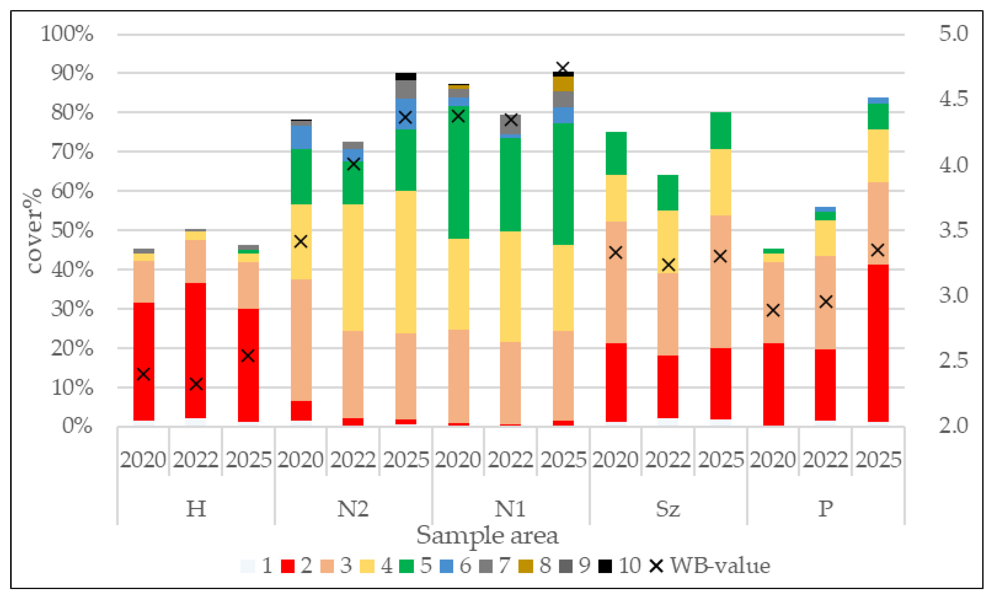 - Penksza, K.; Turcsányi-Járdi, I.; Fűrész, A.; Saláta-Falusi, E. Marhalegelők vegetációjának vizsgálata az Ipoly-völgy homoki gyepeiben. AWET 2023, 19, 68–74. [Google Scholar] [CrossRef]