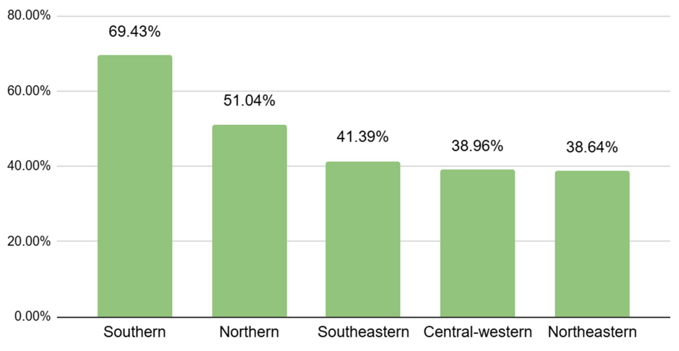 | Rural properties | This dataset, later classified by size (smallholding, small, medium, and large) [36,37], allows the identification of potential peasant units. The classification of rural propertis by size can be found in the Supplementary Materials (Table S1). Among these categories, smallholding and small properties have a greater potential for primary peasant production [38,39]. To use this database as an indicator of land size, methodological procedures based on Matias [40] were adopted, due to the overlap in property geometries. |