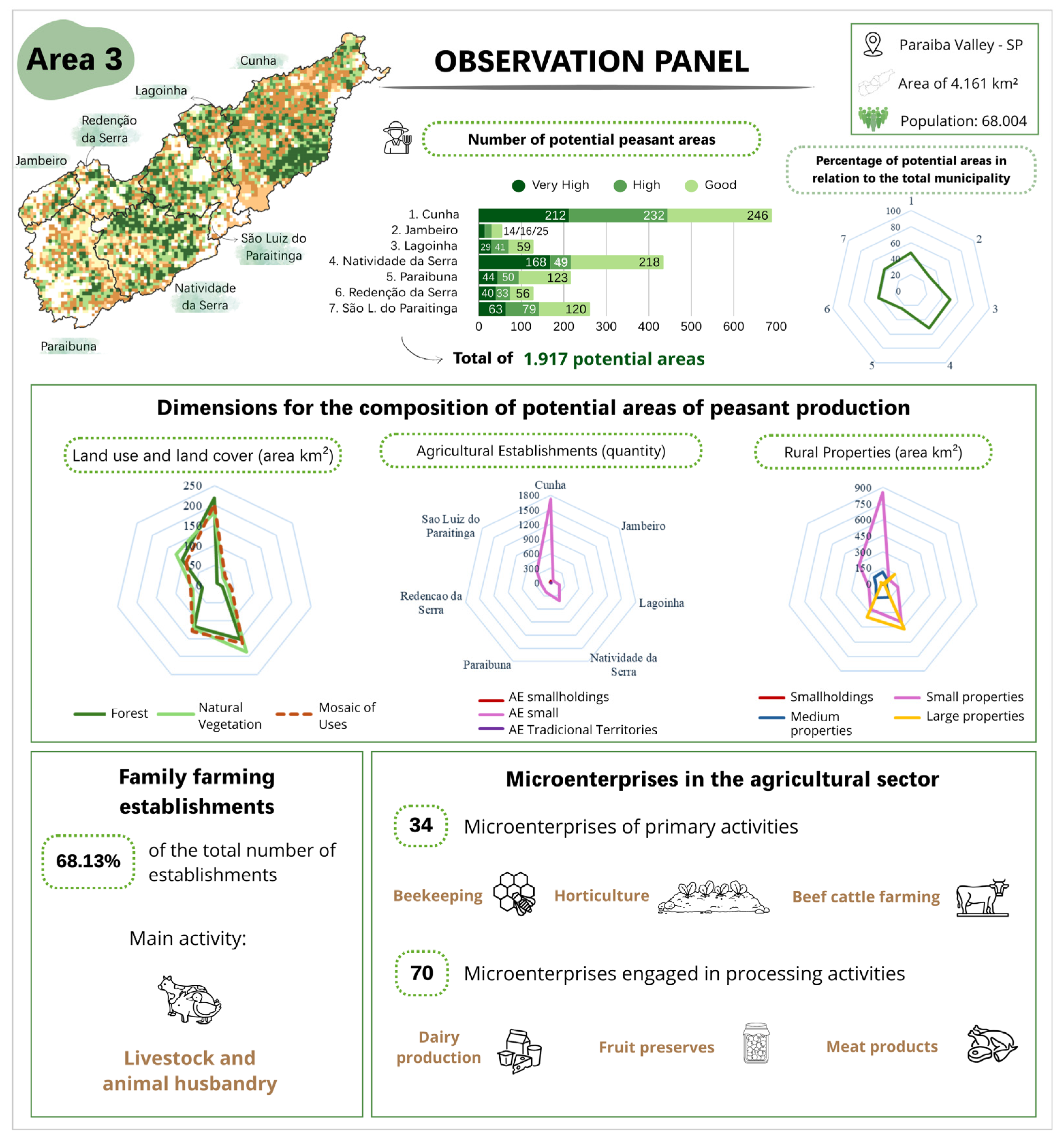 - I—Municipalities within the Area, with the spatial distribution of potential areas for primary peasant agrifood production;