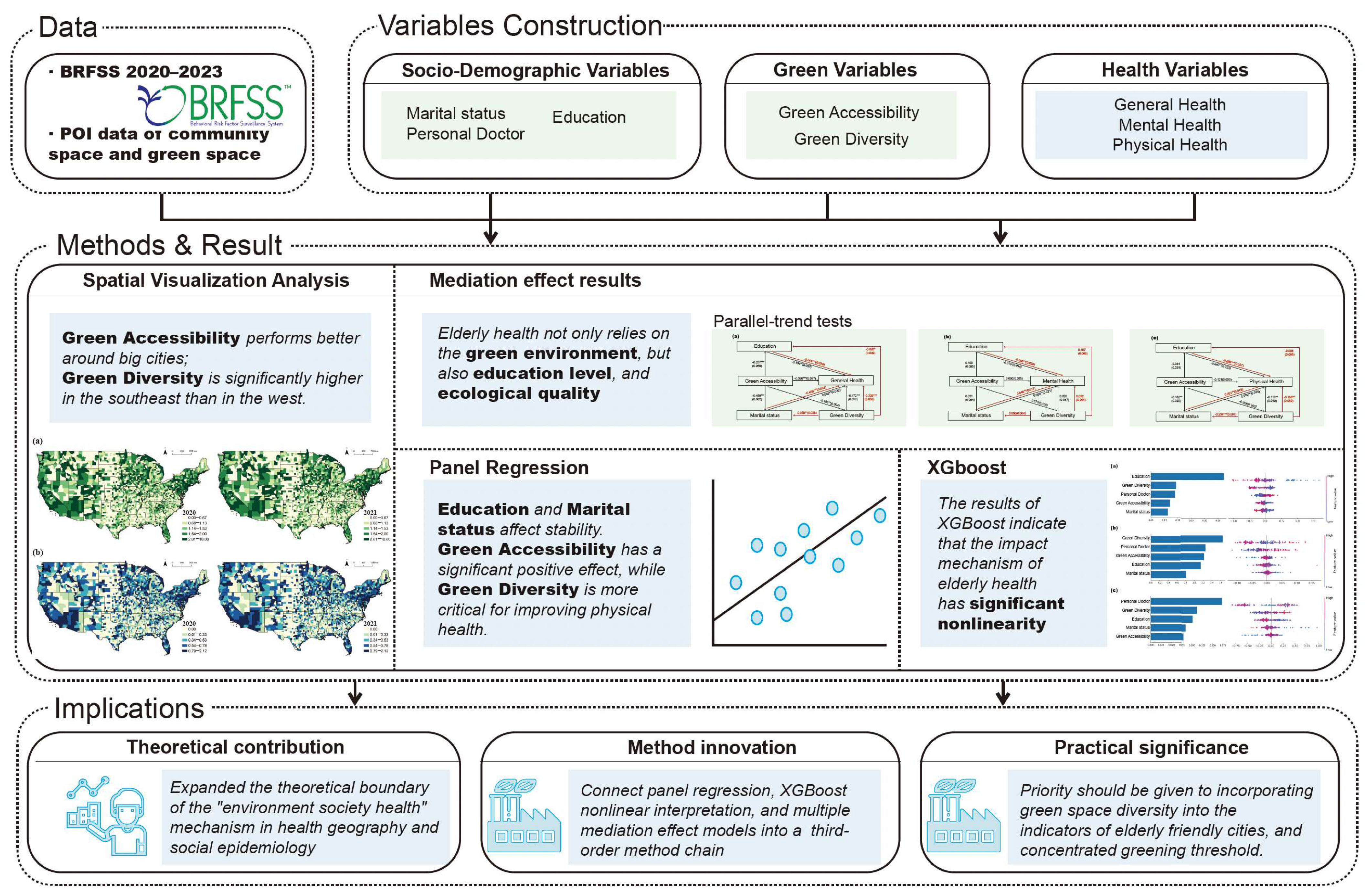 Yang J, Li P, Li J, Chen J. Is More Green Space Always Better for Healthy Aging? Exploring Spatial Threshold and Mediation Effects in the United States. Land. 2026; 15(2):207. https://doi.org/10.3390/land15020207