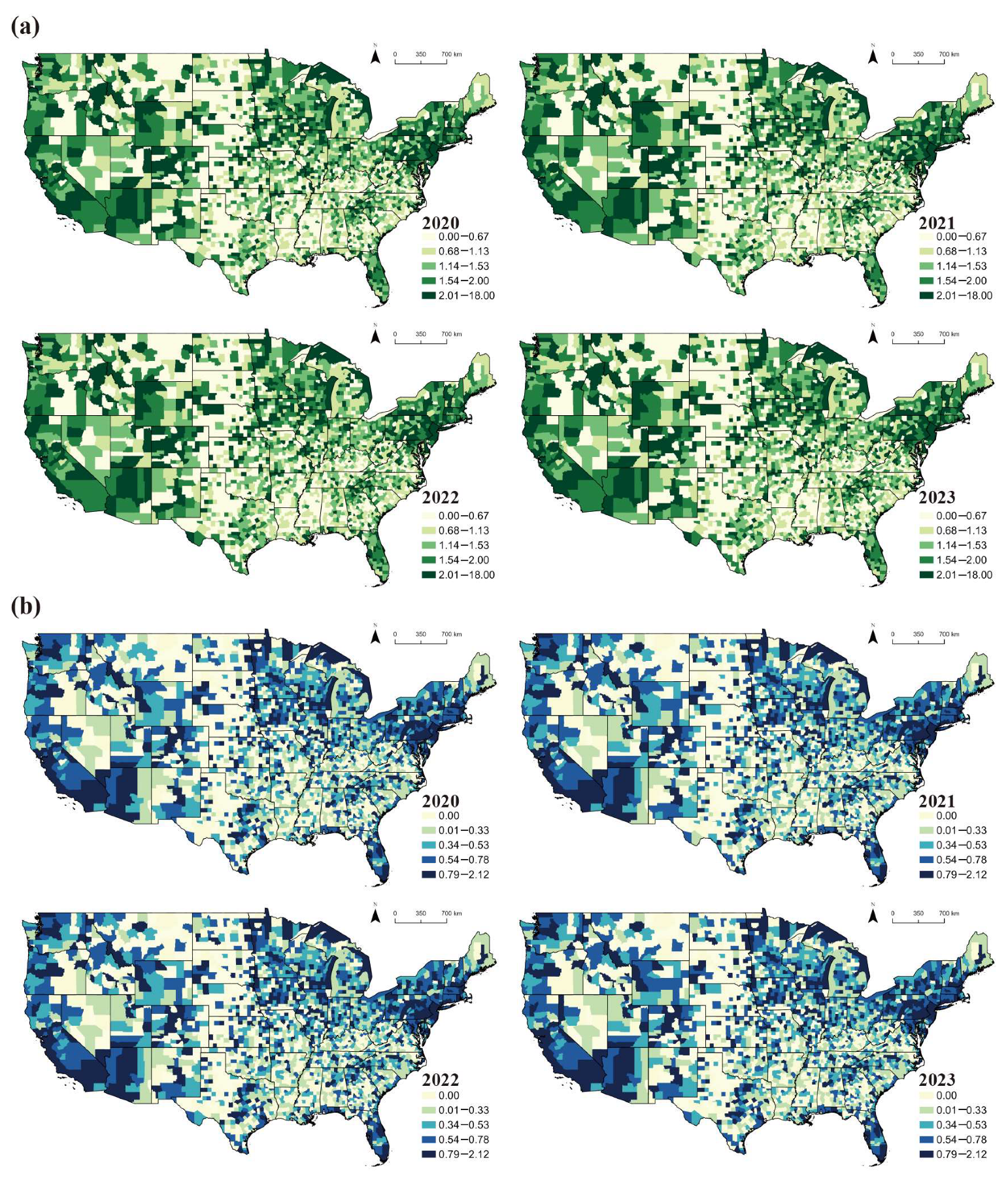 APA StyleYang, J., Li, P., Li, J., & Chen, J. (2026). Is More Green Space Always Better for Healthy Aging? Exploring Spatial Threshold and Mediation Effects in the United States. Land, 15(2), 207. https://doi.org/10.3390/land15020207