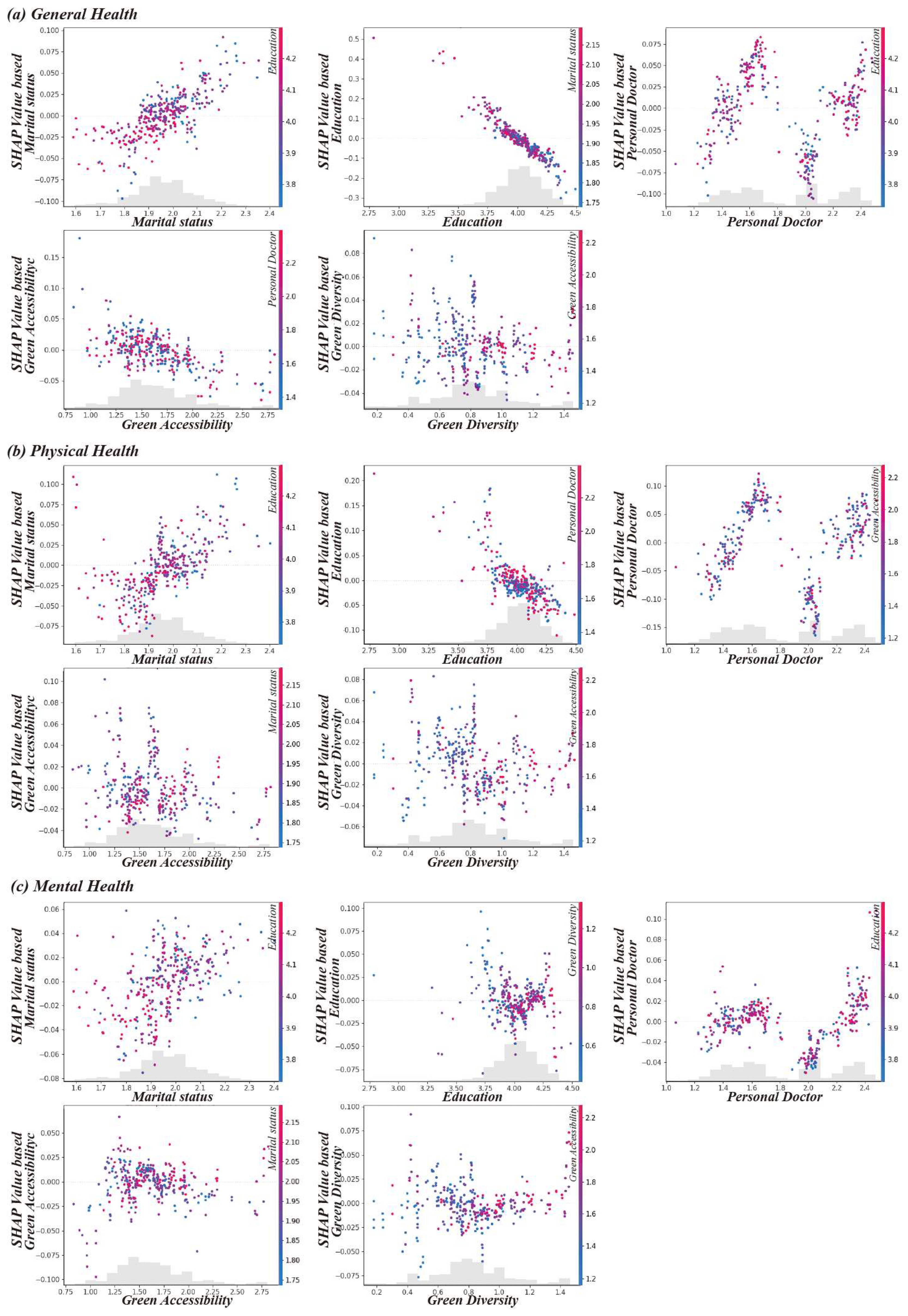 | Green Accessibility => Marital Status => Physical Health | Green Accessibility => Education => Physical Health | Green Accessibility => Green Diversity => Physical Health | Green Diversity => Marital Status => Physical Health | Green Diversity => Education => Physical Health | |