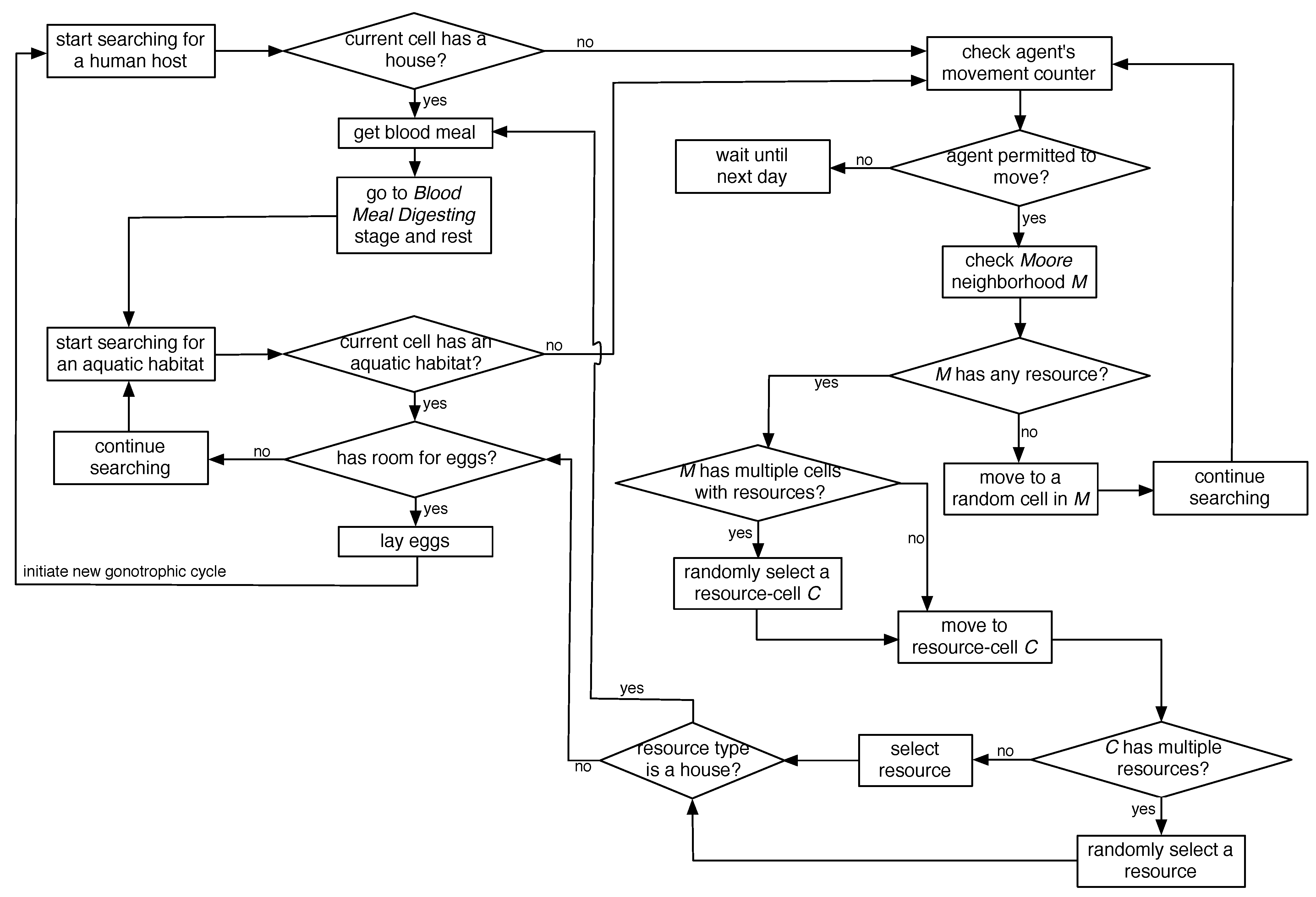 11]. The ABM describes the population dynamics of the malaria-transmitting mosquito species