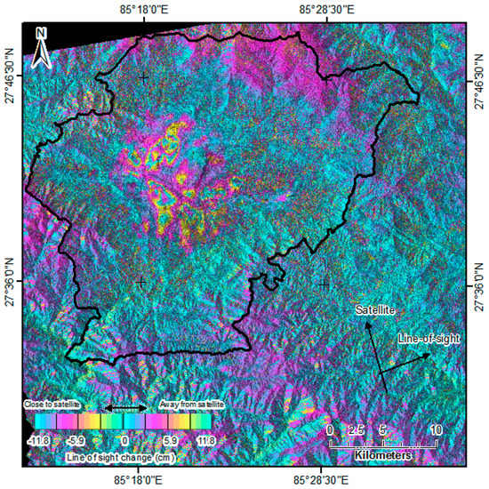 Differential interferogram for Kathmandu Valley from 2 November 2007 to 7 February 2010 obtained from DInSAR processing.