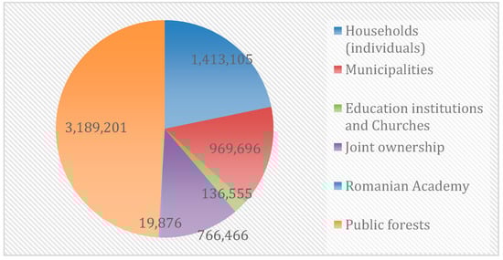 Mirroring in detail what had happened in 2004, the rightwing opposition came up with a simple and seemingly harmless amendment to the Forest Code, which adds to the definition of the public forest the effective forest area owned by the state prior to communist nationalization (i.e., Law 177/1947), which was just 1,942,000 hectares. The difference to the actual area of the public forests (more than 3 million hectares, see Figure 2) shall be restituted to other entities (municipalities, joint ownership, and companies) whose successors failed to produce solid tenure evidence so far, for whatever reason. Among the motives invoked by this new bill is Law 165/2013, art. 13, 1st paragraph, which states that if the land restitution is no longer possible on the initial locations, the corresponding area will be restituted from the land owned by the administrative precinct where the claim were submitted. Other reasons are the new Civil Code, which better defines the public ownership and the decision made by the Constitutional Court in 2017 [].
