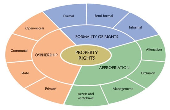 Conceptual framework of property rights in land development. Source: modified from [,,,,].