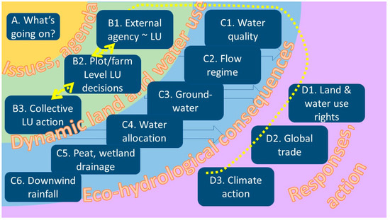 Initial game typology based on scope (A for agenda setting, B for better understanding land-use decisions, C for consequences of land-use decisions for water flows, D. for driver level responses by stakeholders external to the landscape considered in B).