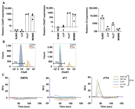 3.2. Expression of Complement Receptors C5aR1 (CD88) and C3aR by EMT6 and 4T1 Mammary Carcinoma Cell Lines