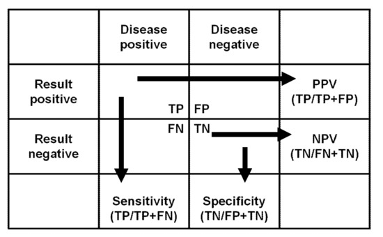 - Loong, T.-W. Understanding sensitivity and specificity with the right side of the brain. BMJ 2003, 327, 716–719. [Google Scholar] [CrossRef]