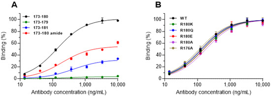 All the peptides used in this work were synthesized by GenScript (Piscataway, NJ, USA), as follows: KLH-P1: peptide CTQNRQIDR conjugated to KLH; Bio-P1: biotinylated peptide TQNRQIDR (also referred to as W.T.); Bio-P2: biotinylated peptide MGNEIDTQNRQIDRIMEKAD; P3: IIGNLRHMALDMGNEIDTQNRQIDRIMEKAD; 173–179: biotinylated peptide TQNRQID; 173–181: biotinylated peptide TQNRQIDRI; 173–180 amide: biotinylated peptide TQNRQIDR-amide; R180K: biotinylated peptide TQNRQIDK; R180Q: biotinylated peptide TQNRQIDQ; R180E: biotinylated peptide TQNRQIDE; R180A: biotinylated peptide TQNRQIDA; R176A: biotinylated peptide TQNAQIDQ.