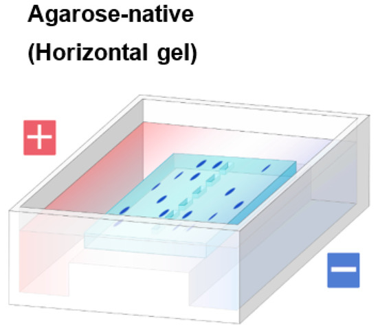 - Li, C.; Arakawa, T. Agarose native gel electrophoresis of proteins. Int. J. Biol. Macromol. 2019, 140, 668–671. [Google Scholar] [CrossRef] [PubMed]