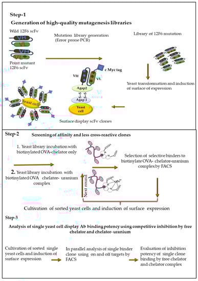 3.1. Multistep Random Mutagenesis Library of an Anti-Uranium 12F6 scFv