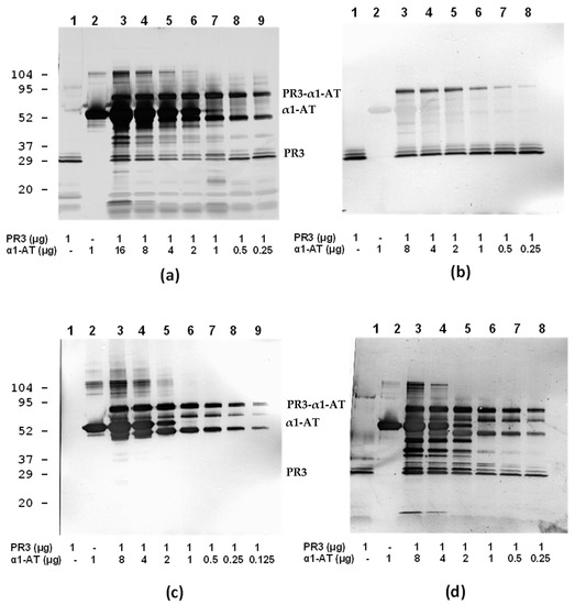 - Rao, N.V.; Wehner, N.G.; Marshall, B.C.; Gray, W.R.; Gray, B.H.; Hoidal, J.R. Characterization of proteinase-3 (PR-3), a neutrophil serine proteinase. Structural and functional properties. J. Biol. Chem. 1991, 266, 9540–9548. [Google Scholar] [CrossRef]