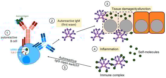 In sum, there is a growing body of evidence suggesting that TLR7 is capable of controlling the activation of autoreactive IgM+ B cells. Further, autoreactive B cells that differentiate into IgM autoantibody-secreting plasma cells might cause a vast variety of autoimmune diseases via pathogenic IgM autoantibodies.
