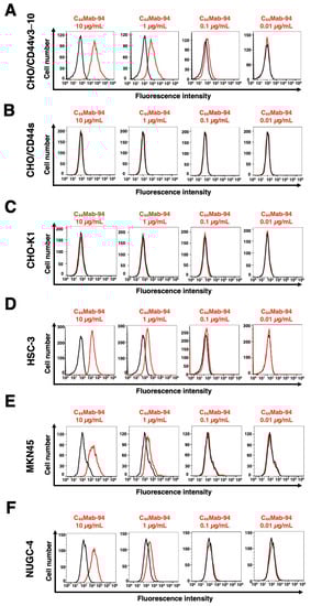 3.2. Flow Cytometric Analysis of C44Mab-94 against CD44-Expressing Cells