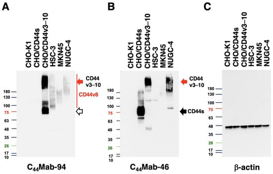 Suzuki H, Goto N, Tanaka T, Ouchida T, Kaneko MK, Kato Y. Development of a Novel Anti-CD44 Variant 8 Monoclonal Antibody C44Mab-94 against Gastric Carcinomas. Antibodies. 2023; 12(3):45. https://doi.org/10.3390/antib12030045