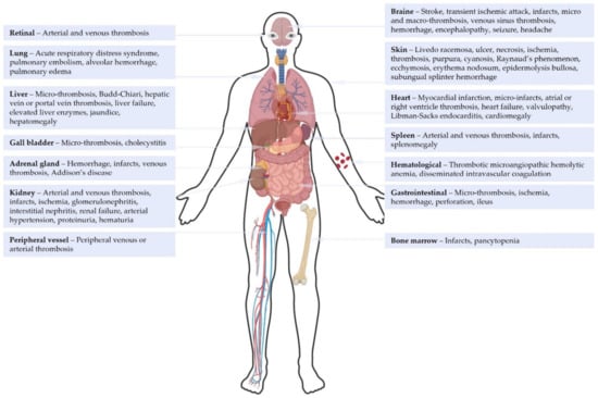 Clinical manifestations of catastrophic antiphospholipid syndrome according to the literature [,]. Figure 1 was created with BioRender.com.