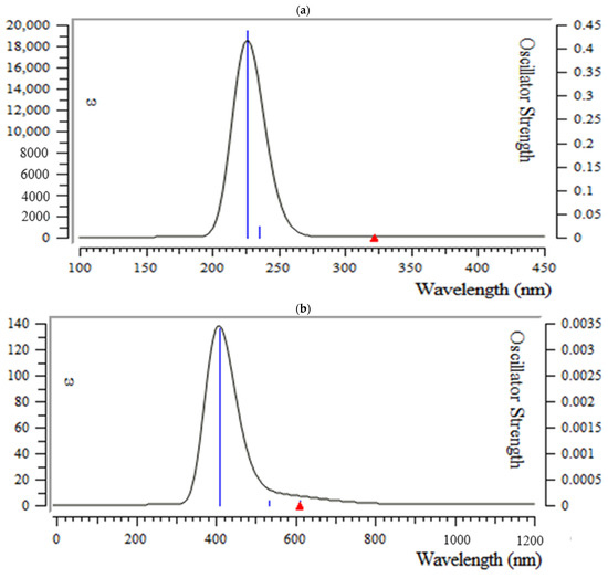 There is a critical factor as an energy gap between “HOMO” and “LUMO” for recognizing the characteristics of molecular electrical transport [76]. Based on the Frank–Condon principle, the maximum absorption peak (max) is related to a UV–visible spectrum to vertical excitation.