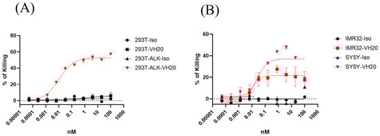 Taken together, these T cytotoxicity efficacy results suggest the potential of our ALK-targeting VH20 to be used in the context of bispecific T cell engager for the eradication of ALK-positive tumor cells.