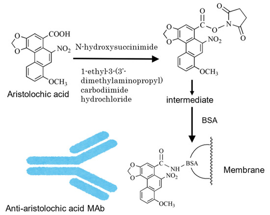 - Li, X.W.; Morinaga, O.; Tian, M.; Uto, T.; Yu, J.; Shang, M.Y.; Wang, X.; Cai, S.Q.; Shoyama, Y. Development of Eastern blotting technique for the visual detection of aristolochic acids in Aristolochia and Asarum species using monoclonal antibody against aristolochic acids I and II. Phytochem. Anal. 2013, 24, 645–653. [Google Scholar] [CrossRef] [PubMed]