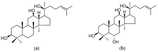 - Chen, X.J.; Zhang, X.J.; Shui, Y.M.; Wan, J.B.; Gao, J.L. Anticancer Activities of Protopanaxadiol- and Protopanaxatriol-Type Ginsenosides and Their Metabolites. Evid. Based Compl. Altern. Med. 2016, 2016, 5738694. [Google Scholar] [CrossRef] [PubMed]