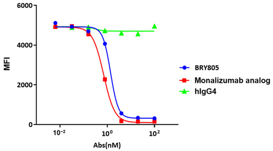 A competitive fluorescence-activated cell-sorting (FACS) experiment utilizing sHLA-E tetramers demonstrated that both BRY805 and monalizumab analog selectively blocked the binding of HLA-E to CD94/NKG2A expressing cells.