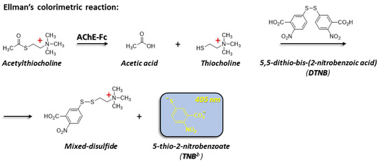 - Ellman, G.L.; Courtney, K.D.; Andreas, V., Jr.; Feather-stone, R.M. A new and rapid colorimetric determination of acetylcholinesterase activity. Biochem. Pharmacol. 1961, 7, 88–95. [Google Scholar] [CrossRef]