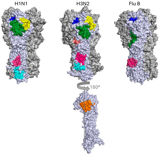 Finally, the occluded epitope is a name given to an epitope either sitting between two HA monomers or within the HA core. Despite being characterised as early as 1993 [69], the value of this low-variability site for bnAbs had not been realised until three independent research teams demonstrated its ability to provide therapeutic protection against a range of different influenza A viruses, including H1N1, H3N2, H5N1, and/or H7N9 [70,71,72].