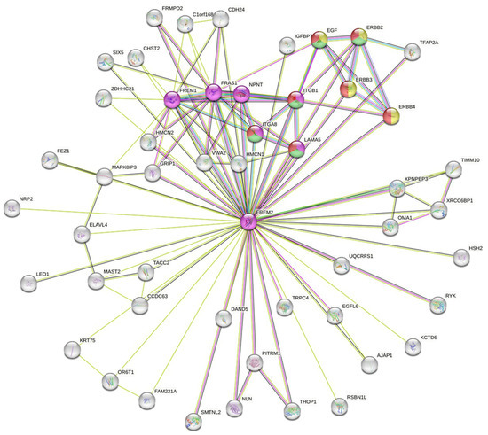 - The Human Protein Atlas. Available online: https://www.proteinatlas.org/ENSG00000150893-FREM2/subcellular?fbclid=IwAR2lwtW67VEh92GwCj68q5NDheinMCDls6ziWPgsBMoRKc-VObtP4CmaelM (accessed on 31 March 2023).