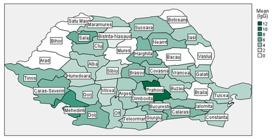 In Europe, the last seroprevalence study for measles virus infection was conducted between 1996 and 2004 by the European Seroepidemiology Network (ESEN 2) as part of a more extensive study on age-specific seroprevalence for eight vaccine-preventable diseases (measles, mumps, rubella, diphtheria, pertussis, varicella-zoster, hepatitis A, hepatitis B) []. The results showed that Romania was one of the seven countries considered at risk of measles epidemics due to high susceptibility in children []. Indeed, during the last 15 years, Romania has experienced three large-scale measles outbreaks: between 2011 and 2012 (12,234 confirmed cases and three deaths), between 2016 and 2020 (over 20,000 confirmed cases and 64 deaths), and between 2023 and 2024 (over 25,000 cases and 22 deaths, still ongoing) [,,]. The susceptible population has been continuously amplified due to the suboptimal coverage rates with both doses of the measles-mumps-rubella vaccine registered during the last 10–15 years []. The most significant number of cases and deaths in all three epidemics have been recorded in children up to one year of age, who should have been partially protected by maternal antibodies transmitted transplacentally and through breastfeeding. In this context, this study aimed to assess the seroprevalence of measles antibodies in Romania in persons of fertile age to evaluate potential immunity gaps that leave newborns unprotected against measles and to inform specific targeted vaccination campaigns.