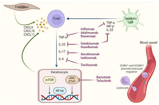 LP’s immunologic overlap with diseases like psoriasis, vitiligo, and oral lichen planus-like graft-versus-host disease further supports the relevance of shared cytokine and cellular targets, reinforcing the rationale for therapeutic cross-application [13,14,15].