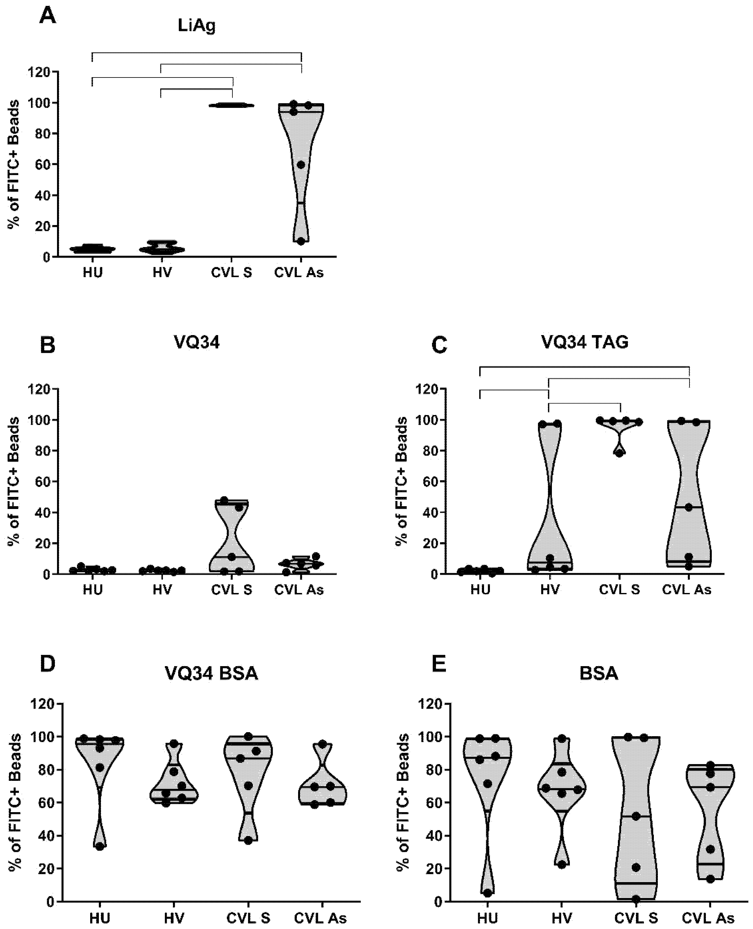 - Pedral-Sampaio, G.; Alves, J.S.; Schriefer, A.; Magalhães, A.; Meyer, R.; Glesby, M.J.; Carvalho, E.M.; Carvalho, L.P. Detection of IgG Anti-Leishmania Antigen by Flow Cytometry as a Diagnostic Test for Cutaneous Leishmaniasis. PLoS ONE 2016, 11, e0162793. [Google Scholar] [CrossRef] [PubMed]