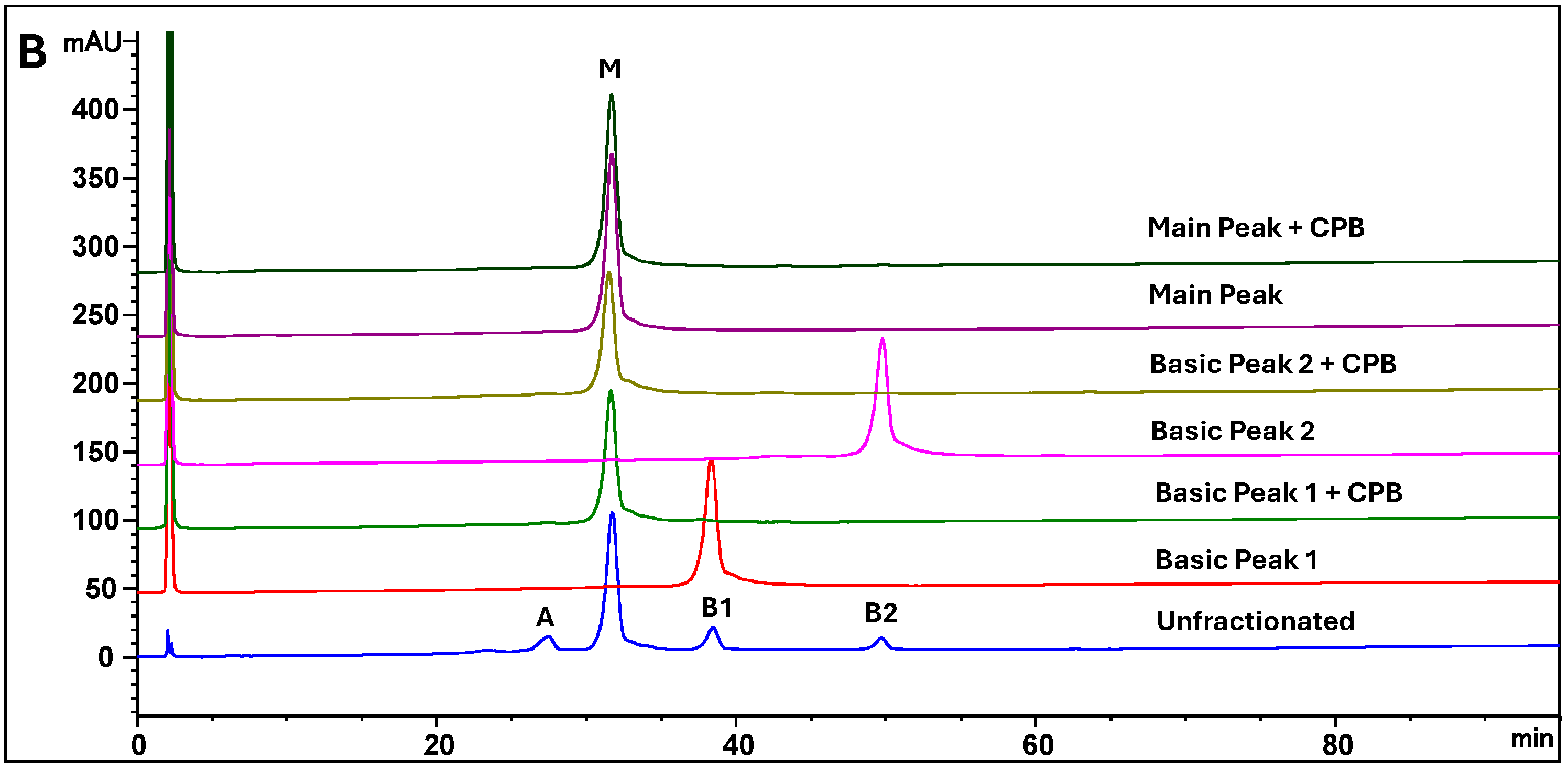 Sample | Acidic Peak | Main Peak | Basic Peak 1 | Basic Peak 1 + CPB | Basic Peak 2 | Basic Peak 2 + CPB |