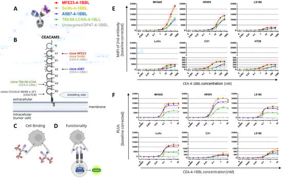 - Bacac, M.; Fauti, T.; Sam, J.; Colombetti, S.; Weinzierl, T.; Ouaret, D.; Bodmer, W.; Lehmann, S.; Hofer, T.; Hosse, R.J.; et al. A Novel Carcinoembryonic Antigen T-Cell Bispecific Antibody (CEA TCB) for the Treatment of Solid Tumors. Clin. Cancer Res. 2016, 22, 3286–3297. [Google Scholar] [CrossRef] [PubMed]