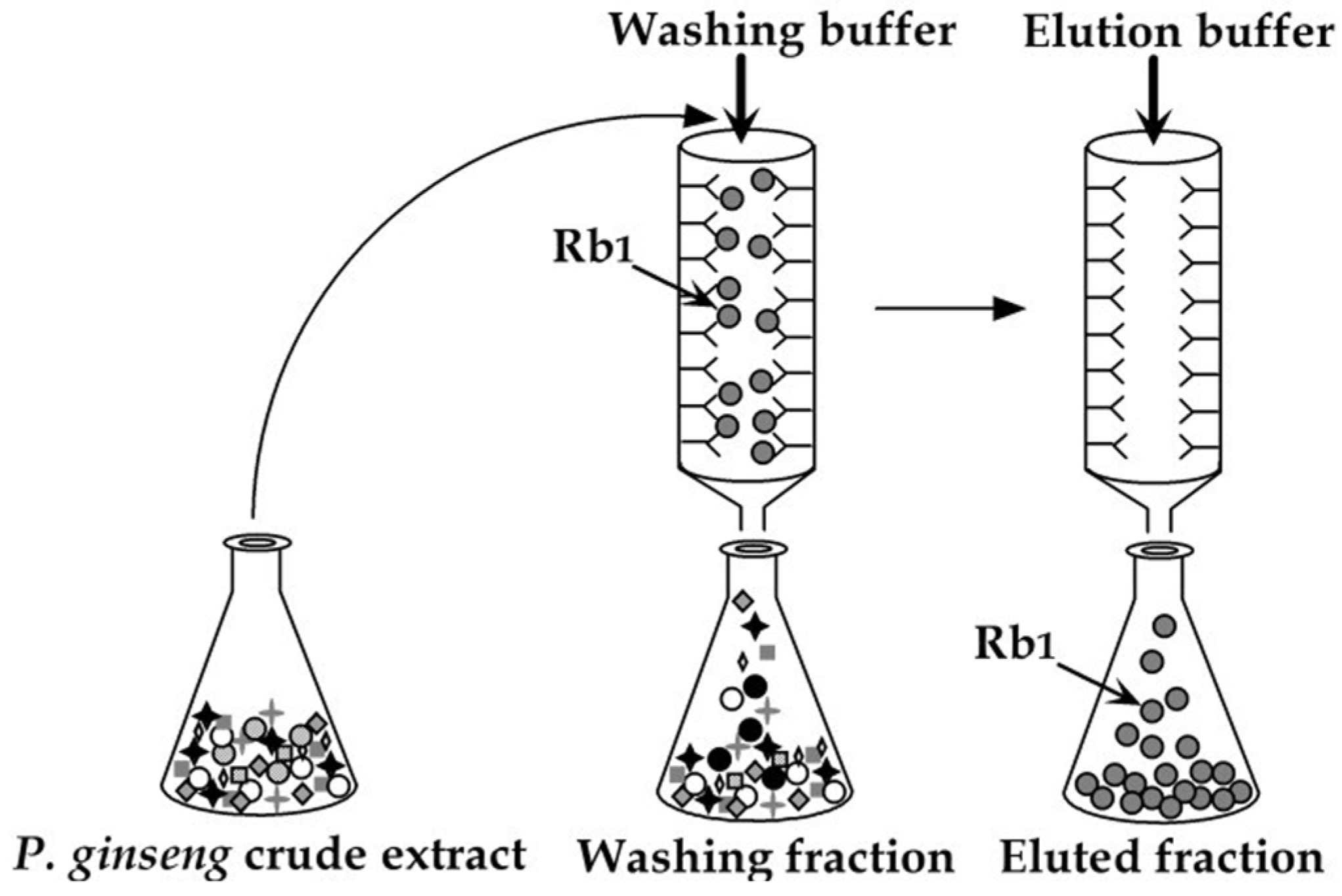 - Fukuda, N.; Tanaka, H.; Shoyama, Y. Isolation of the Pharmacologically Active Saponin Ginsenoside Rb1 from Ginseng by Immunoaffinity Column Chromatography. J. Nat. Prod. 2000, 63, 283–285. [Google Scholar] [CrossRef] [PubMed]