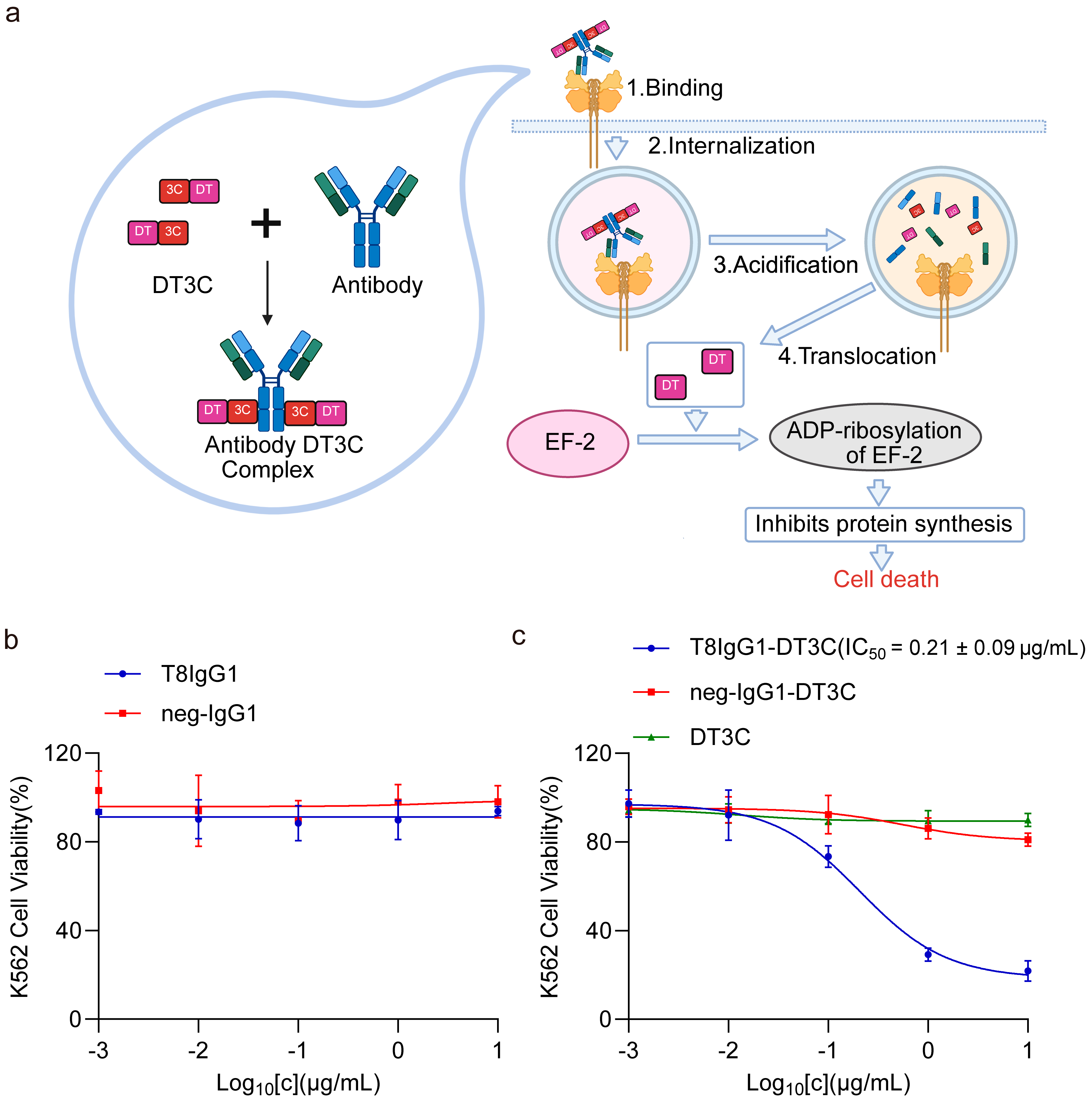 Figure S8). However, when conjugated to the toxin DT3C, T8IgG1 effectively delivered DT3C into K562 cells and induced cell death, whereas the control group showed no effect (