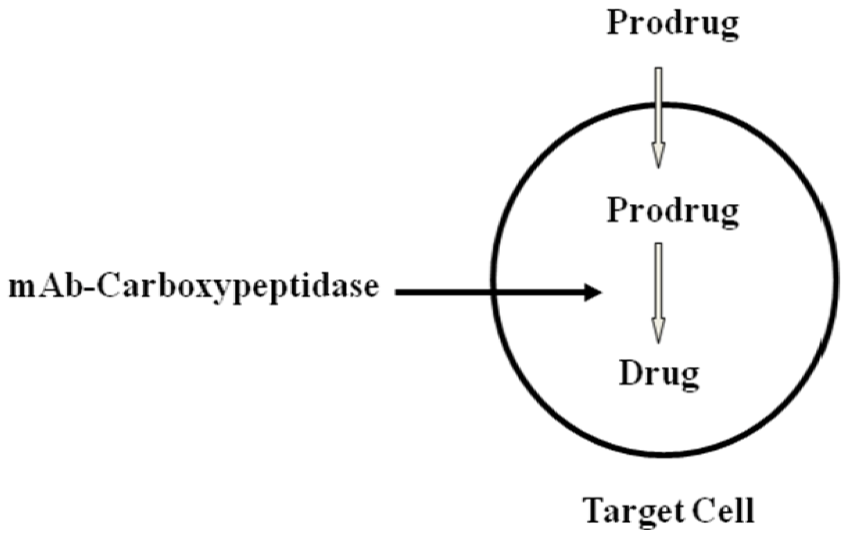 Illustration of the mechanism of mAb-effector fusion protein of a prodrug. The mAb is directed towards tumor-associated antigens and the enzyme is delivered to the tumor cell, within which the prodrug is cleaved, releasing the cytotoxic drug.