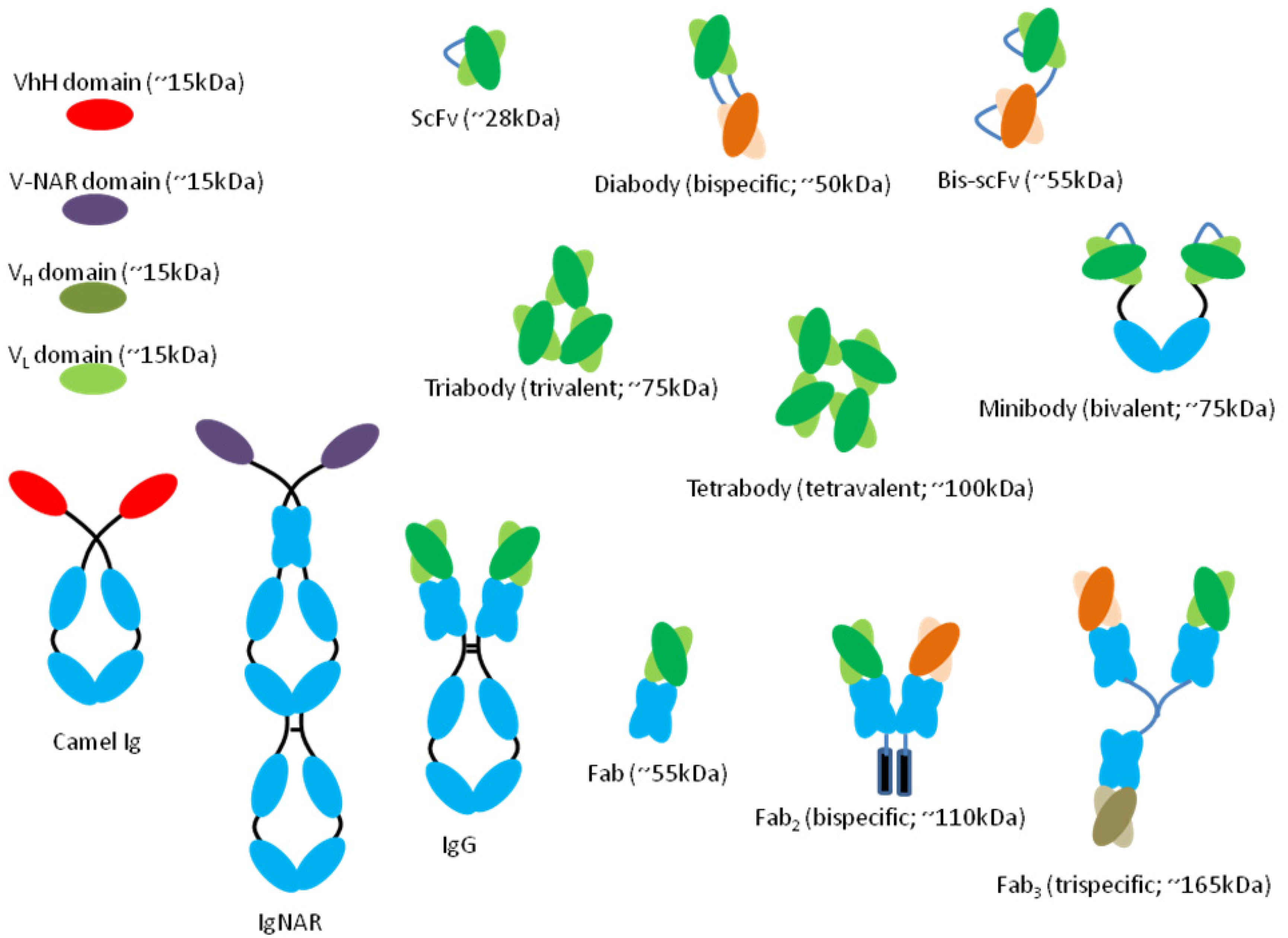 - Holliger, P.; Hudson, P.J. Engineered antibody fragments and the rise of single domains. Nat. Biotechnol. 2005, 23, 1126–1136. [Google Scholar] [CrossRef]