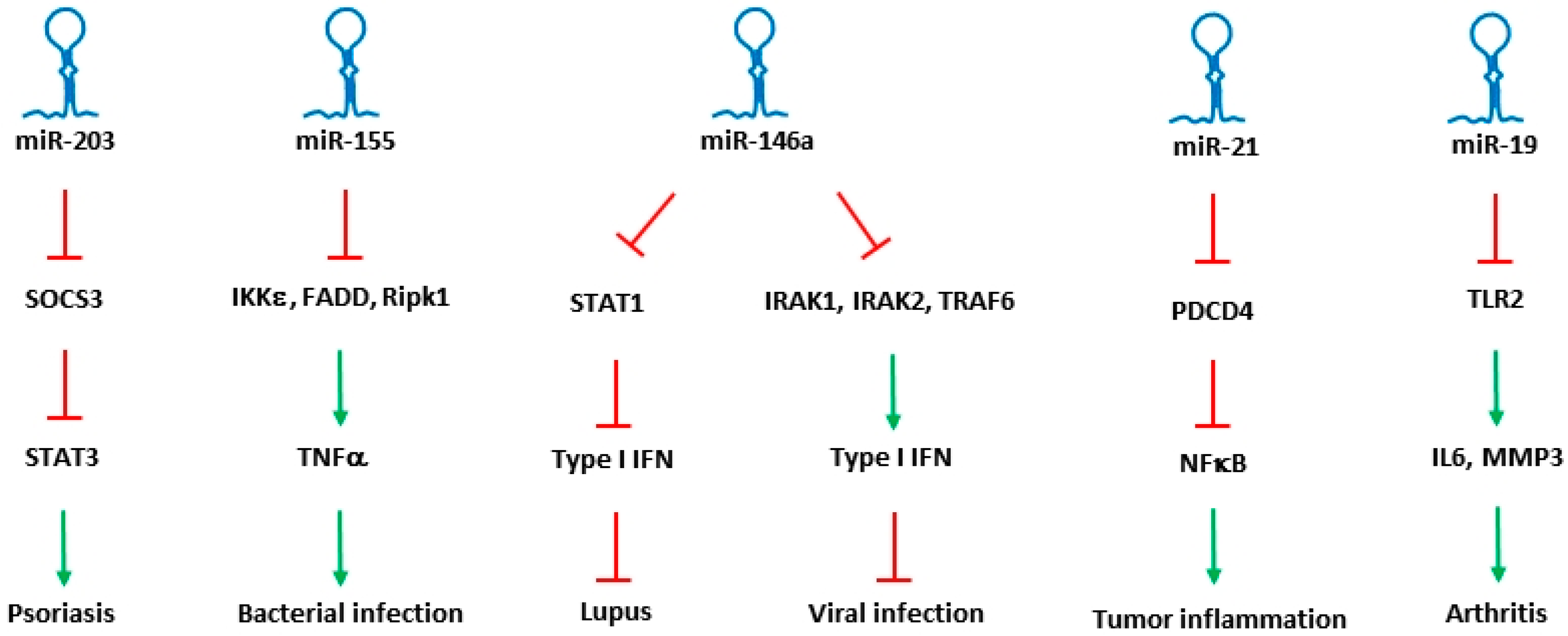 52. Tang, Y.; Luo, X.; Cui, H.; Ni, X.; Yuan, M.; Guo, Y.; Huang, X.; Zhou, H.; de Vries, N.; Tak, P.P.; et al. MicroRNA-146A contributes to abnormal activation of the type I interferon pathway in human lupus by targeting the key signaling proteins. Arthritis Rheumatol. 2009, 60, 1065–1075. [Google Scholar] [CrossRef] [PubMed]